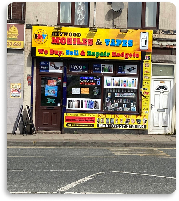 Welcome to Heywood Mobile and Vapes — your one-stop destination for all things tech and vape in Heywood. We specialize in providing fast, reliable, and affordable repair services for mobile phones, laptops, and other devices.
